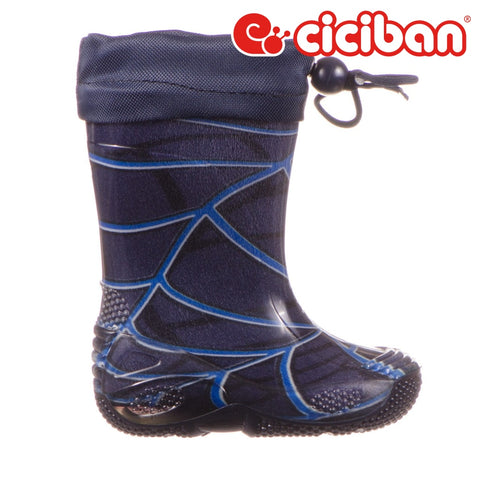 Boy's blue‚ rainboot with soft and cozy warm faux-fur lining.