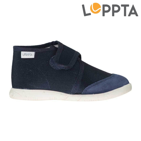 Our classic navy slipper! Slipper or light shoe. Leather insole with arch support.