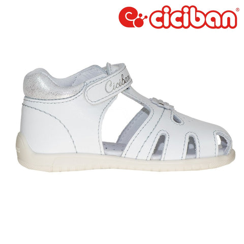 Girl's closed-toe leather toddler sandal. Nubuck leather upper with white accents. Smooth leather lining and leather insole with arch support.