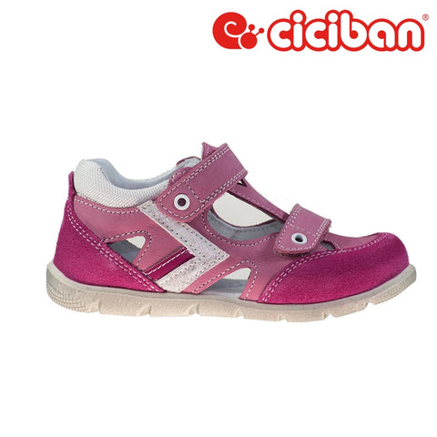 Pretty in pink! Girl's closed-toe sandal.