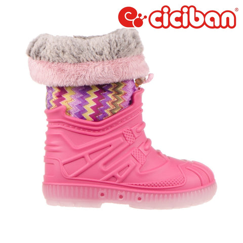 Girl's pink rainboot with soft and cozy warm faux-fur lining.