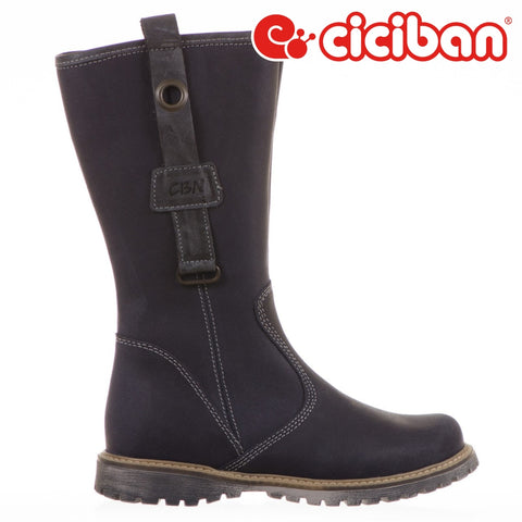 Beautiful full leather girl's riding boot, handmade in Europe. Rich navy blue colour. Nubuk leather with warm fleece lining, and leather insole.